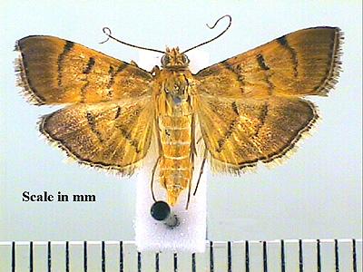 Adult females lay 300 to 400 eggs on host plant leaves or shoots. After 4-7 days first instars hatch. The larvae web leaves together and lives usually between them. They are bright green and very active when disturbed.